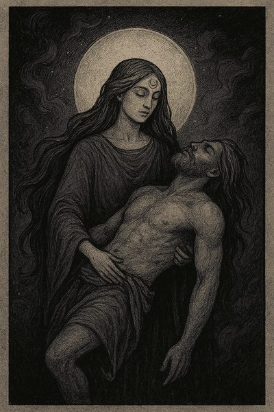 El amor eterno de la Diosa y el Dios: una historia de luz, sombra y renacimiento.